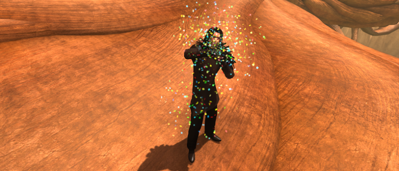 The [Emote: Make it Rain Confetti] award item is acquired from [Buzzing Hive]s and unlocks the Make it Rain Confetti emote on use. This emote allows the player to spew a handful of glitter in front of them. Make It Rain Confetti has no chat command associated with it and must be used from the Emote UI.