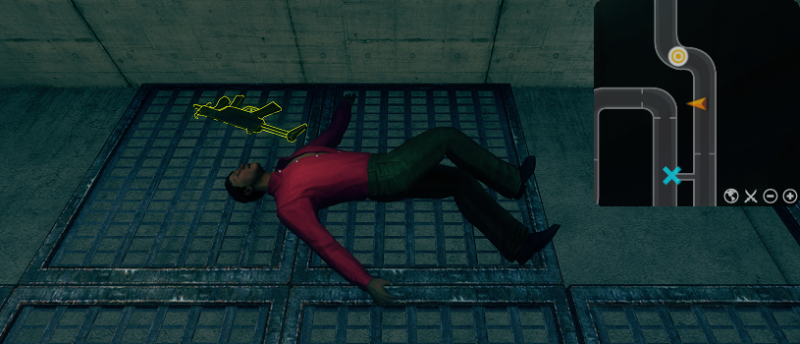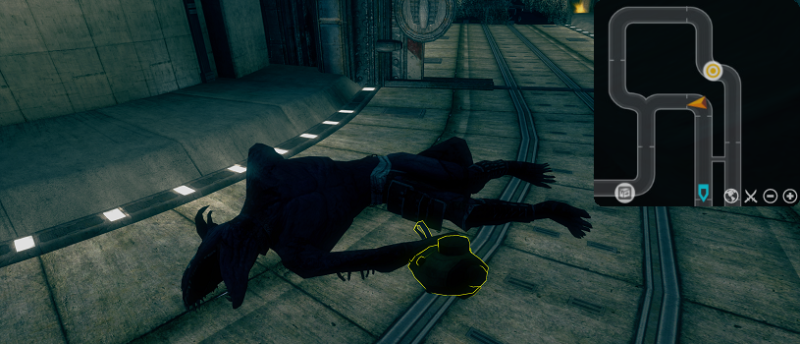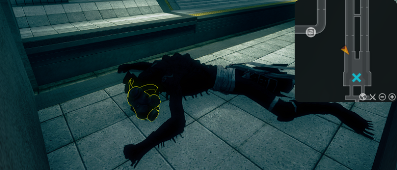 Use the [Korinto-kai weapon] (190,330) beside the Korinto-kai corpse in the unfinished electrical grid platform of Orochi Underground - Section 008A.