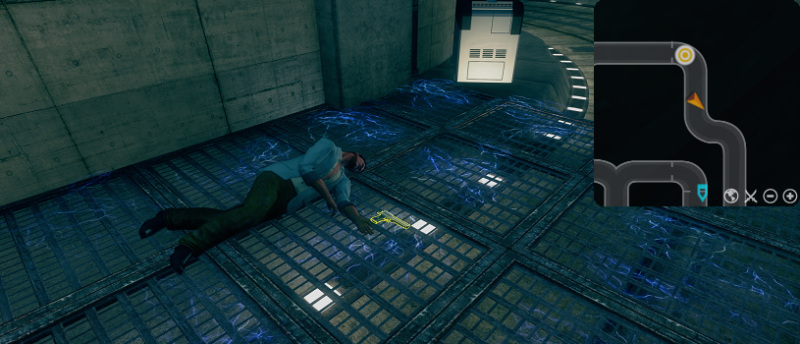 Use the [Korinto-kai weapon] (175,370) in the hand of the electrocuted Korinto-kai corpse in the electrified grid of Orochi Underground - Section 006A.