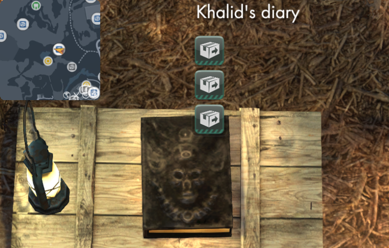Approch anywhere within 2 metres of Khalid (430,635) to return the diary pages to him. He has quite the reach.
