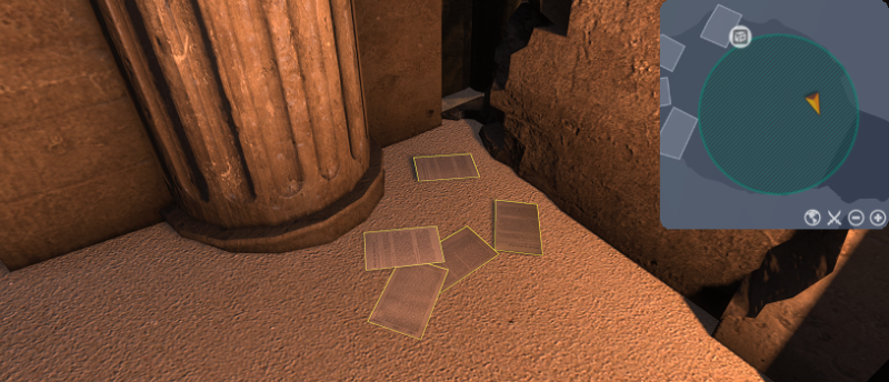 - [Diary page] - (185,660) by a column in a corner within a ruined building containing an Orb of Aten. BUG WARNING: Completely beneath the ground. It can still be interacted with, but is not visible.