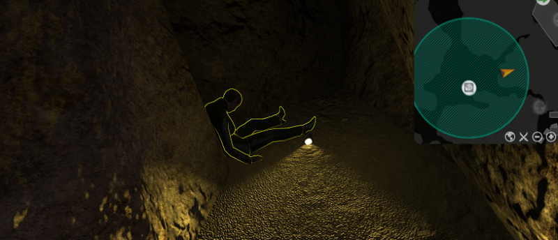 Follow the trail of blood leading North East away from the cockpit and toward a small cave entrance illuminated by the still-lit flashlight of the fallen [Orochi flight engineer] (695,1065). Examine the [Orochi flight engineer] to retrieve the fourth keycard.