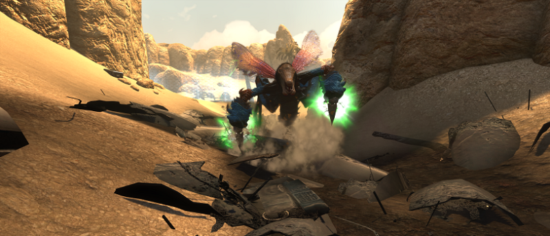 An assault of Sandhorror locusts ambushes immediately! Kill the assaulting Sandhorror locusts. You cannot wait the attack out.