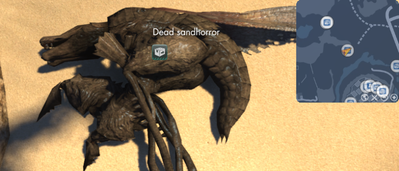 Once two mounds have been destroyed, a large blue locust known as the Sandhorror Hiver will appear (475,530). Kill it. The Sandhorror Hiver will despawn if not engaged within 2 minutes. Leave the area and re-approach the Sandhorror Hiver's point in order to trigger its respawn if necessary.