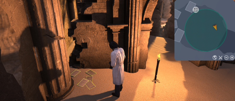 - [Diary page] - (200,615) against a wall within a ruined building containing an Orb of Aten. BUG WARNING: Completely beneath the ground. It can still be interacted with, but is not visible.