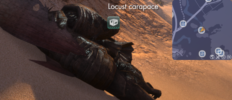A chewed carcass lies at the bank of the riverbed. The only good locusts are dead locusts.
