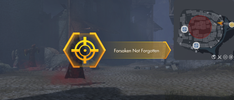 "Forsaken Not Forgotten" is an Area Mission and is received automatically when in close proximity to and in the associated mission area, provided this Mission is not on cooldown. This Mission is removed upon leaving the mission area for 10 seconds, and can be regained by returning to the mission area.