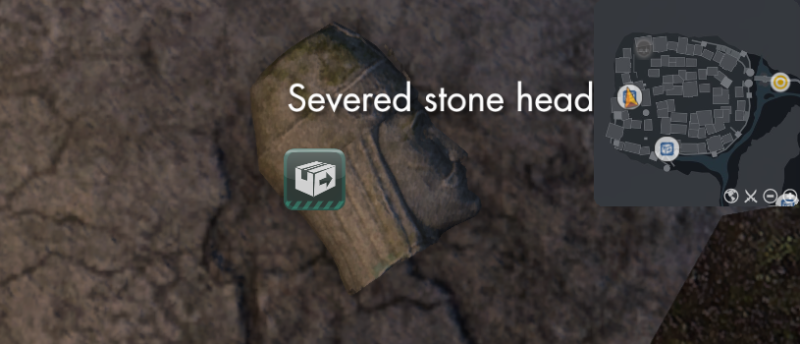The head looks like it's been severed from a stone statue. Examine it closer to find out where it belongs.