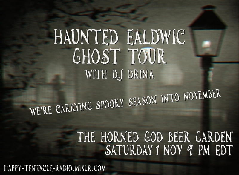 Join Roleplayer "Drina" of Happy Tentacle Radio for the "Haunted Ealdwic Ghost Tour" as she takes her guests on a tour of Ealdwic with spooky stories and local folklore all along the way through haunting roleplay and accompanying audio and music starting at the Horned God beer garden (140, 220 y 27.6 1000) in Ealdwic, London, at 09:00 PM EDT (01:00 UTC) on 01 November 2025! The Haunted Ealdwic Ghost Tour has been a staple of Secret World Legends' roleplaying community events ever since the ghost tour's inception by Roleplayer "Craft" in 2012! Since 2020, "Drina" has held the reins and continues to take Secret Worlders on the Haunted Ealdwic Ghost Tour as his successor.